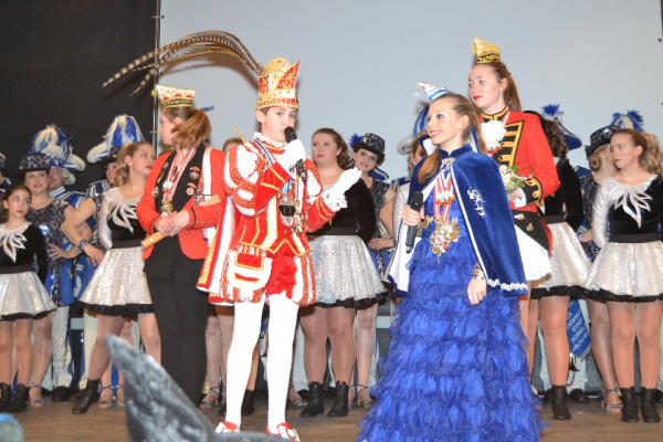 Welch ein grossartiger Empfang beim Kinderkarneval der Prinzengarde Blau-Weiss für das Kinderprinzenpaar und unsere Jugend. Das uniformierte Corps, der Musikzug und die Tanzgarde der Blau-Weissen begleiteten unsere Gruppe auf die Bühne. Der Präsident, Michael Schweers, im bunten Clownskostüm hieß die Jugend willkommen. Wir konnten uns mit einem so gekonnten Auftritt bedanken. Unser 1. Vorsitzende, Ursi Hofer, präsentierte unsere Fahnenschwenker, Andre und Rimo, umjubelt wurde Saya mit ihrem Solomariechentanz und anschliessend der Showtanz der Originale Jugend. Unser Kinderprinzenpaar, Marvin I. und seine Venetia Leni glänzten mit ihrer Rede und dann vor allem mit dem eigenen Sessionslied. Der Schlussakkord - das Tanzduo Daniela und Nina -