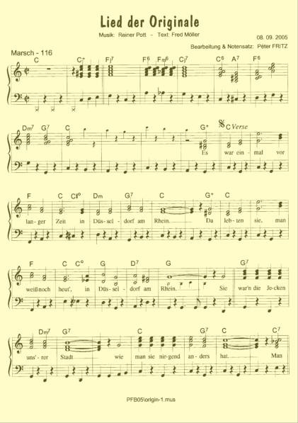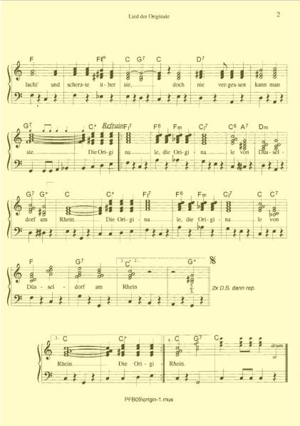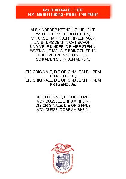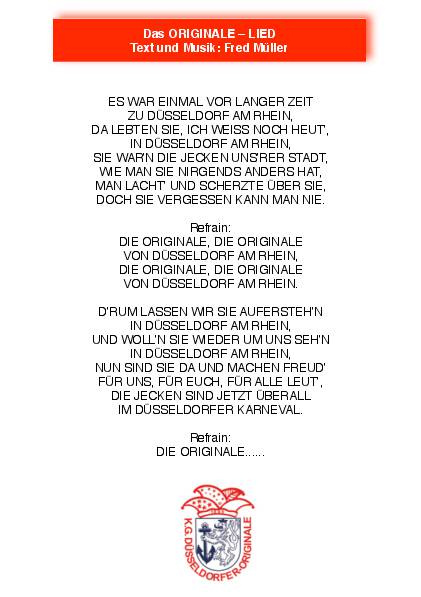 Man darf mittlerweile mit Fug und Recht behaupten, dass das Lied der Originale nicht nur zur generationsverbindenden Hymne des Vereins geworden ist, sondern mit seiner eingängigen Melodie auch ein im Düsseldorfer Karneval bekanntes Einmarschlied und Erkennungsmerkmal unseres Vereins ist.